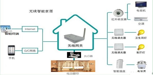 使用集中控制器,不必专门布线,只要将插头插在220V电源插座上,就可控制家里所有的灯光和电器,一般放在床头和客厅。可以在家里不同的房间有多个集中控制器。躺在床上,就可控制卧室的窗帘、灯光、音响及全家的电器。控制灯光时可以调亮度,控制音响时可以调音量,控制拉帘或卷帘时,可以调行程,控制百页帘时可以调角度。 这种集中控制器,其控制指令的数据传输是利用电力线载波,也就是利用给电器供电的交流110V或220V 电力线进行数据传输。这种利用电力线载波控制,相对于红外线遥控,或无线载波遥控来说更具有优势。红外线遥控不能穿越墙壁等非透明物体,控制距离短;无线载波遥控虽然能够穿越墙壁,但由于受各国政府对业余无线频段使用控制,功率很小,传输距离很近,对于居住面积较大的家庭,尤其是复式楼层、Townhouse或别墅住宅,无线遥控就显得无能为力。虽然有些家居系统采用家庭无线中继放大系统进行传输,但会加大硬件成本,而电力线载波传输就可以弥补红外线遥控和无线射频遥控的不足,同时也无需布线,只要在每个控制器和接受器加上电力线载波调制解调器就能进行双向数据传输。
